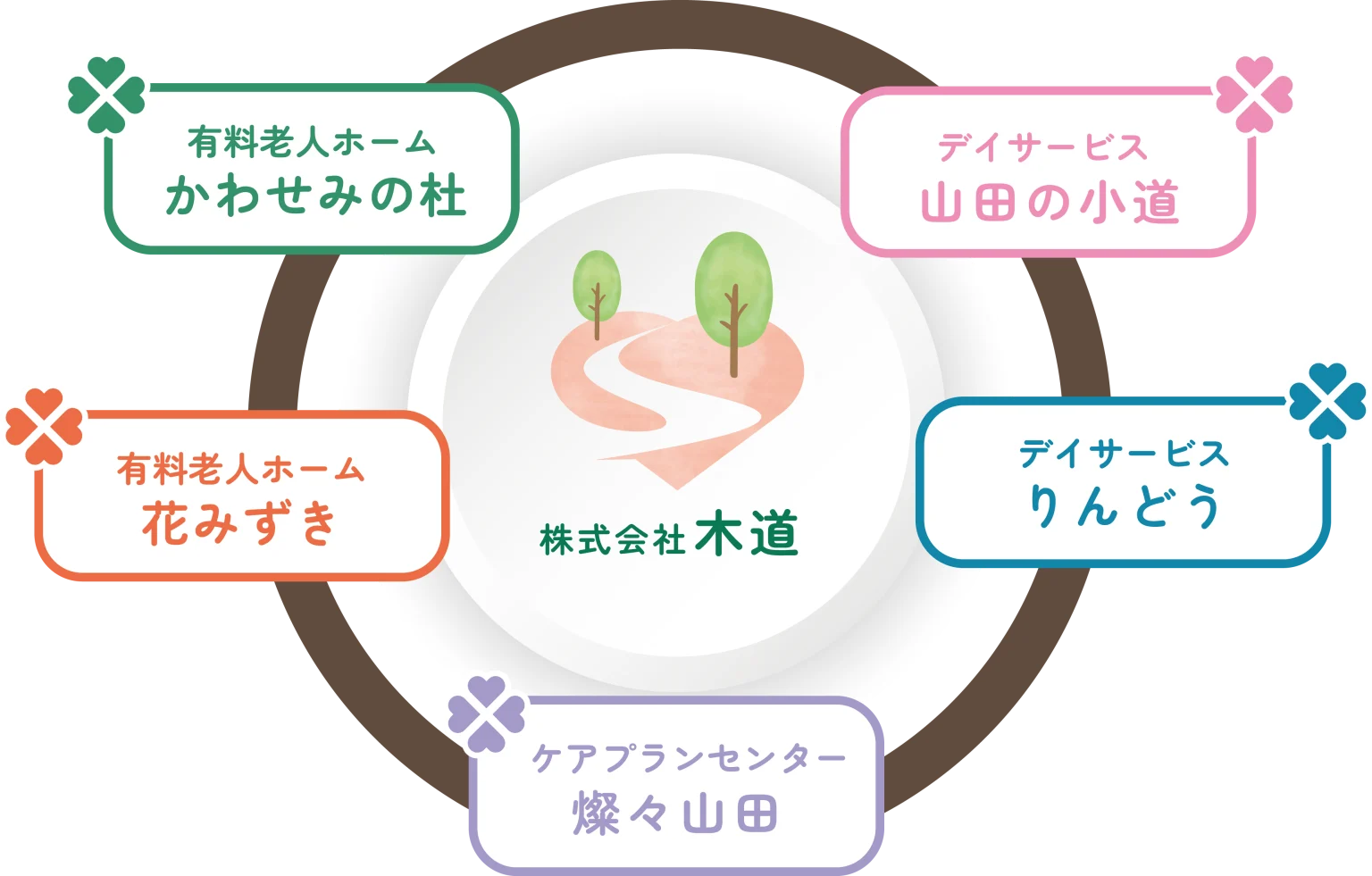 About us 「ここに来てよかった」 と言っていただけるために 私たちは「もっと心の通ったケアを提供したい」という想いからスタートしました。利他の心で寄り添い、技術を磨き続けるとともに、利用者様に合った形状で栄養豊富な手作りの食事を提供。自分らしい生活と幸せな日々を支えるために、温かなケアを心がけています。